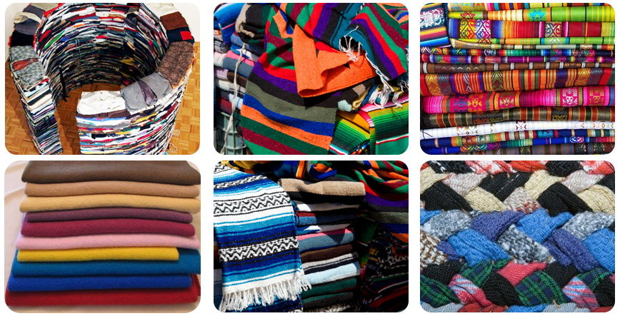 Once the second hand clothing for RE- USE are sorted out, the rest of the rags are used for Recycling and the biggest Importer in the World is India and all Garments are again recycled and made into yarn and finally a NEW Fabric, BLANKETS of different types are produced. |