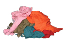 Recycled cut up colored shirts, skirts and pants. Economical, general all purpose wiping rag. |